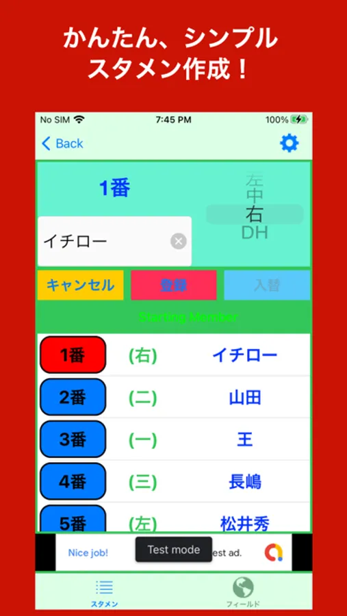 野球のスタメン(オーダー)を作るシンプルなアプリです!