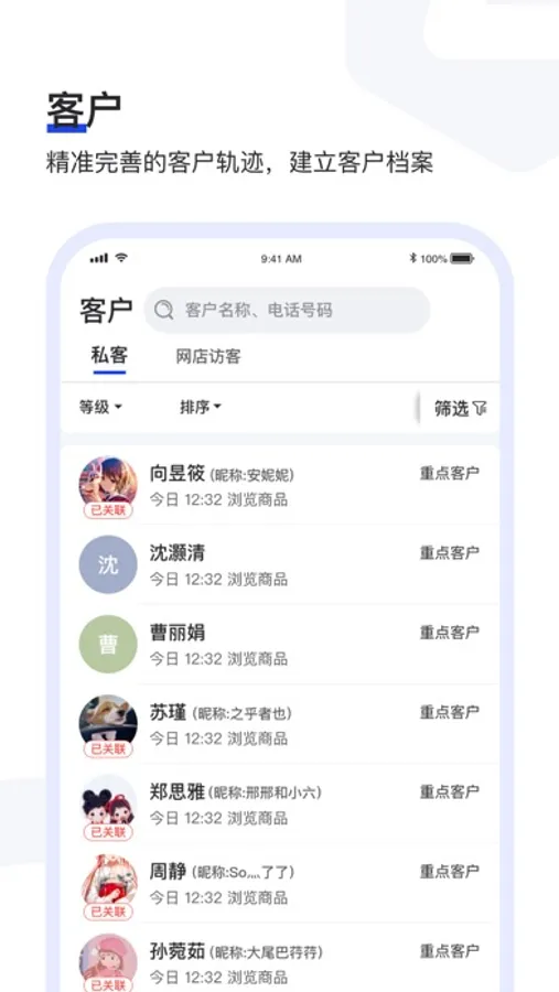 ● 店员账号独立二维码,报备客户后,避免相互抢客