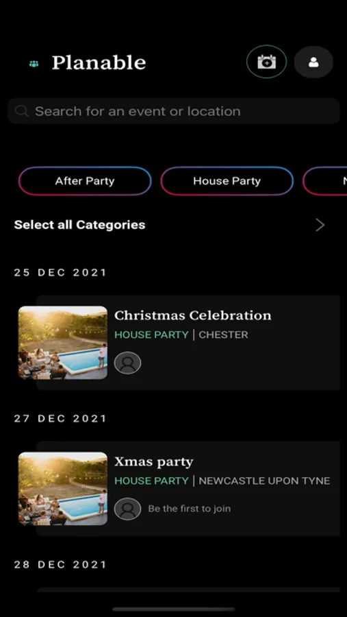 Planable app is a social platform for hosting, attending or advertising social events with friends old and new, local to where you are.