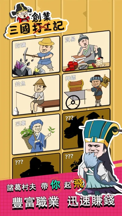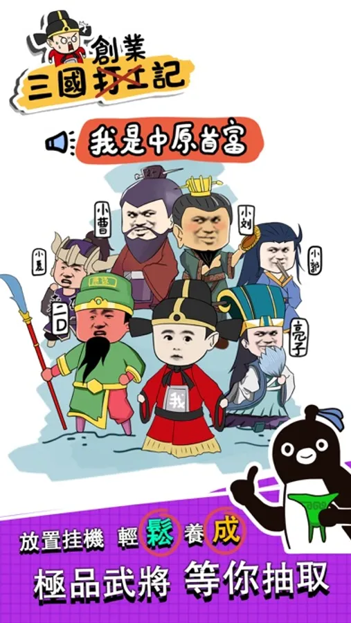這是一款掛機養成遊戲,可以打工賺錢,收集武將,奪取天下。