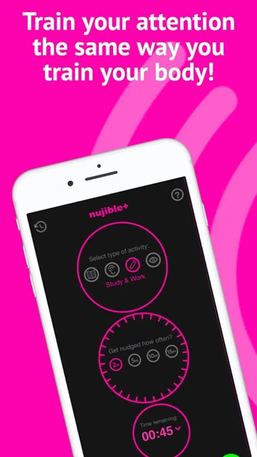 Unlike other focus apps, Nujible+ provides physical feedback that continuously prompts you to redirect your wandering thoughts in real-time as you are in class, working, reading or studying. Nujible+ also includes a Pink Noise feature, similar to white noise but specifically used to increase productivity and concentration.