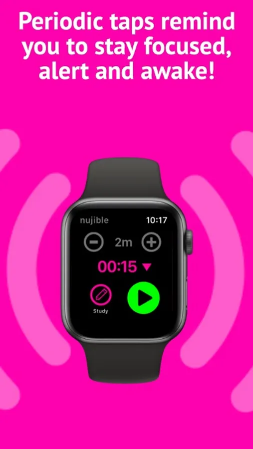 Nujible+ uses periodic, haptic taps on your iPhone or Apple Watch as a subtle but effective nudge to get you back on track!
