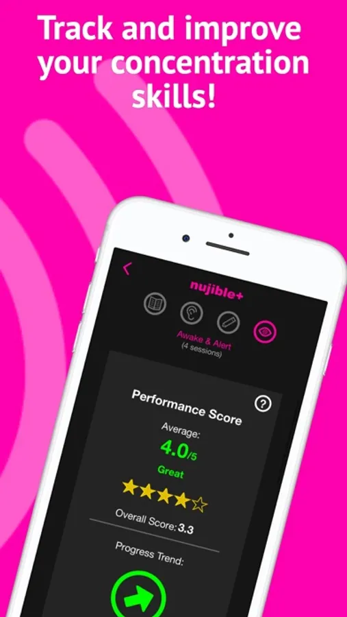 With Nujible+, you can workout your attention endurance skills while reading, listening, studying, working, and staying alert.
