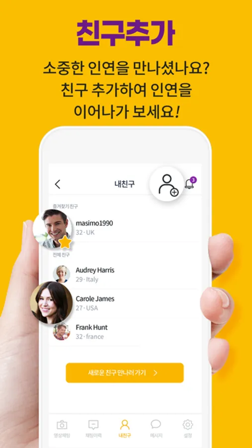 • Friends-Did you meet a precious relationship while making a video call? Add a friend right now and continue the relationship!