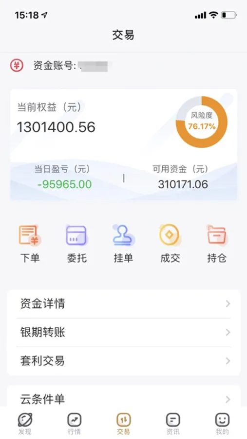 2、交易平台:支持期货交易和期权交易,支持投机、套利交易,支持云条件单、云止盈止损、行权单、预埋单、银期转账等辅助交易功能,操作简单方便;