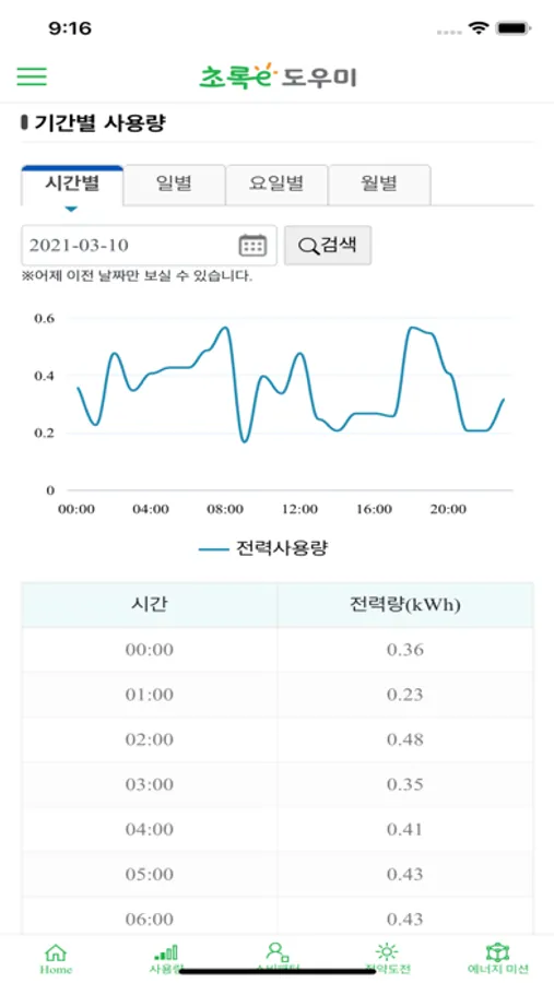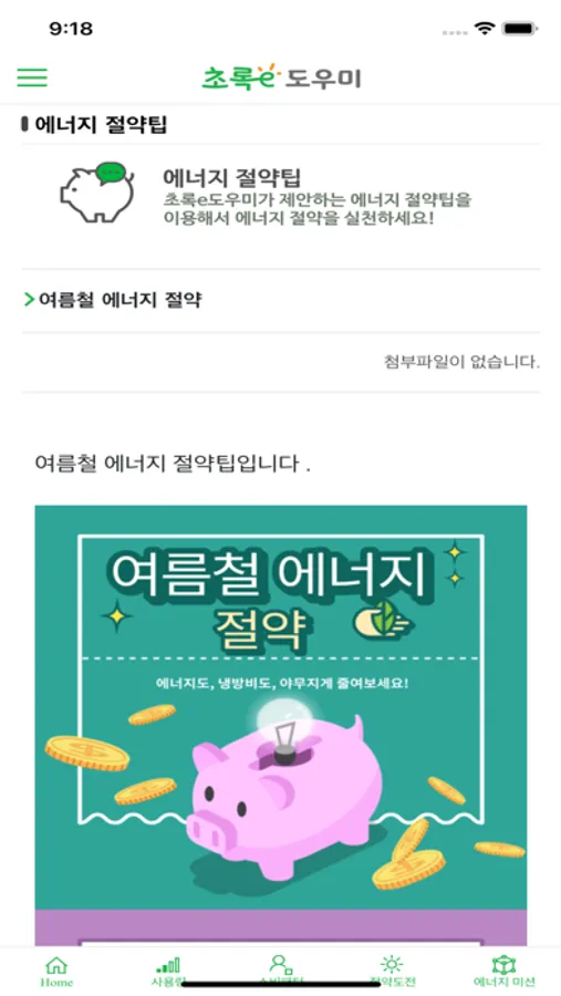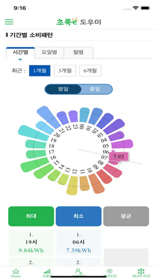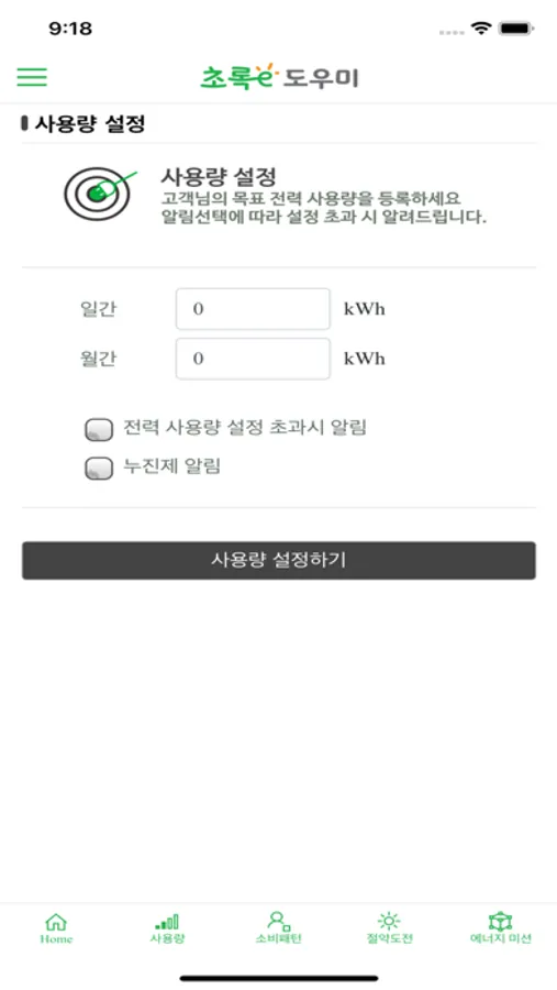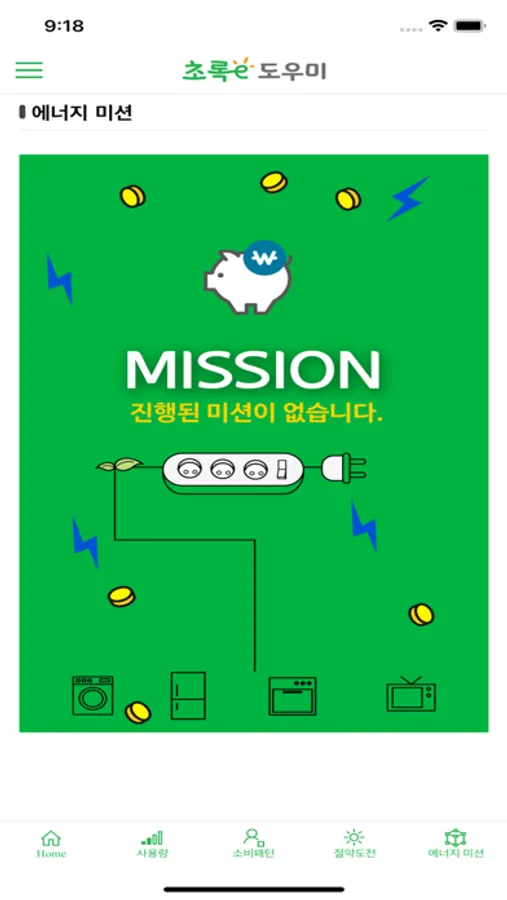 O 주요기능으로는 홈(메인), 사용량 , 소비패턴, 절약습관도전 , 에너지 미션 등이 있습니다.