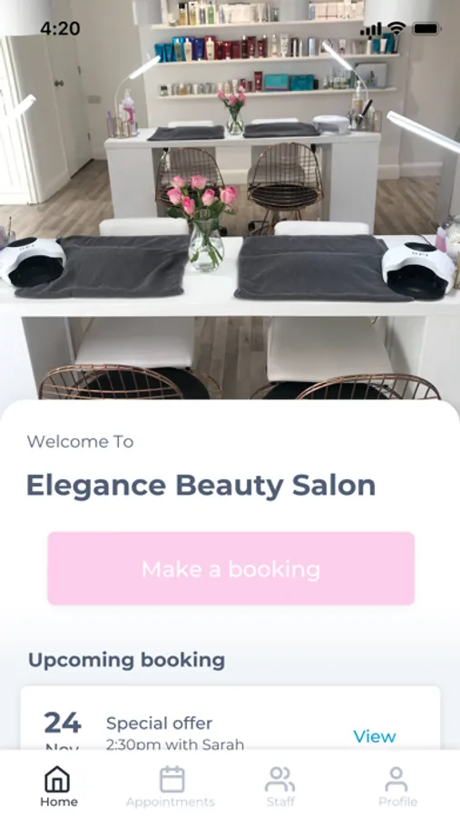 The Elegance Beauty Salon app makes booking your appointments and managing your loyalty points even easier. You're just a few taps away from feeling good and looking great!