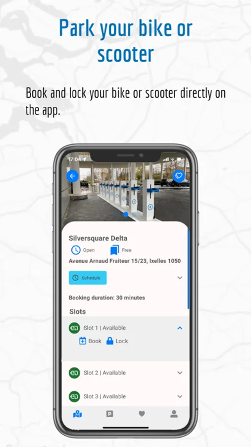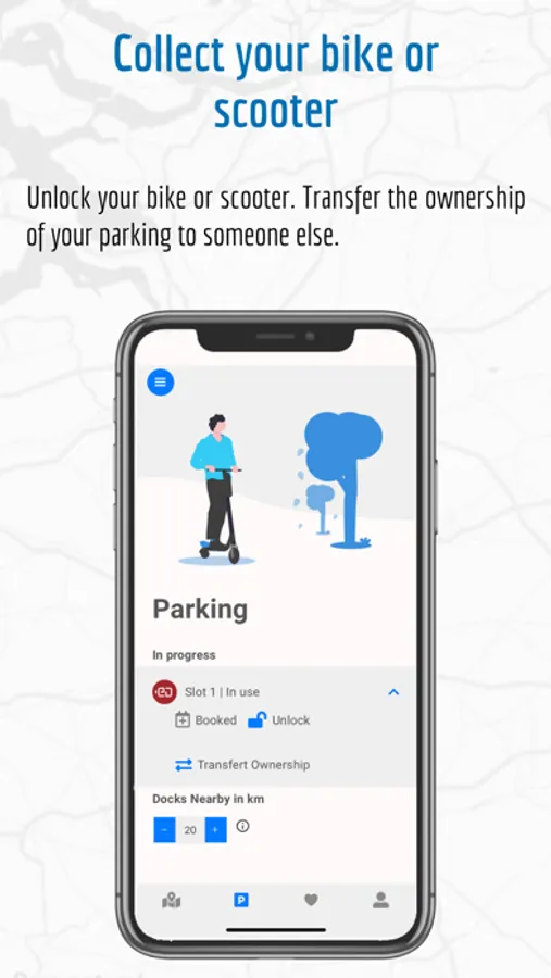 Application to locate docking stations that secure and charge your scooter or bike.