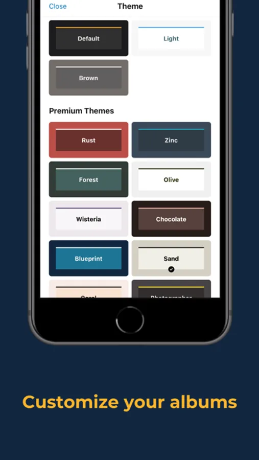 Notos allows you to add your first 200 photos for free, enough to tell a good story, or several small ones. Convinced? Then subscribe to Notos Premium and unlock exclusive features. With Notos Premium, no more limits on the number of images! You can also add videos to make your albums more lively, are entitled to additional color themes for even more customization, can add an access code to your albums, etc...