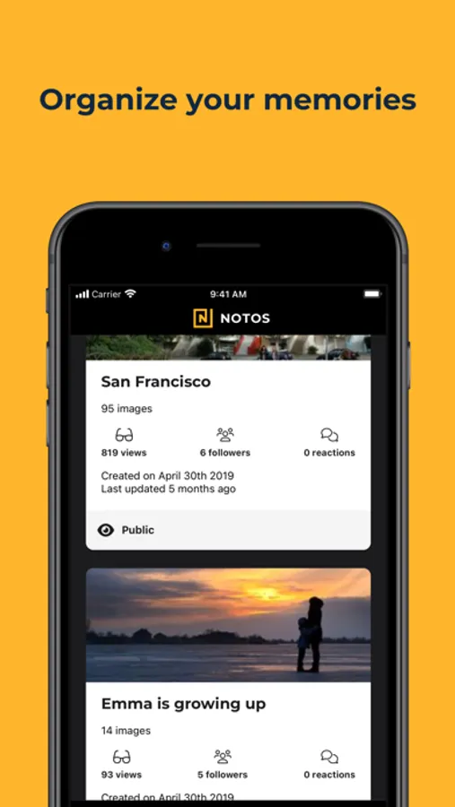 Notos respects your privacy and your personal data: by default, your albums are private, you choose who can access them. You have full control over your data, and Notos will never share it with anyone, not today, not tomorrow.