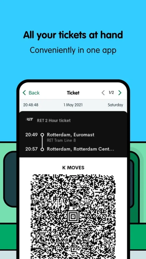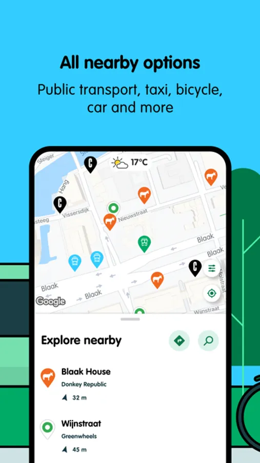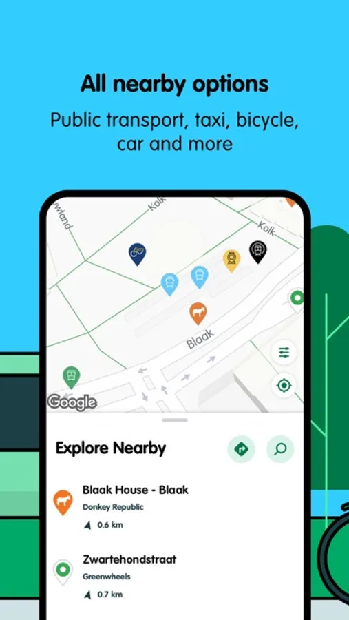 After you have chosen your ideal trip, simply book or reserve the asset of transport you have chosen. This way you are guaranteed to have the bike, taxi, car or seat of your choice at your disposal and you will not be faced with unpleasant surprises. Via the app you will receive your ticket or reservation digitally in the app immediately after booking. Depending on the mode of transport you have chosen, this can be either a QR code or an access code(s). So it is no longer necessary to have a physical ticket with you!