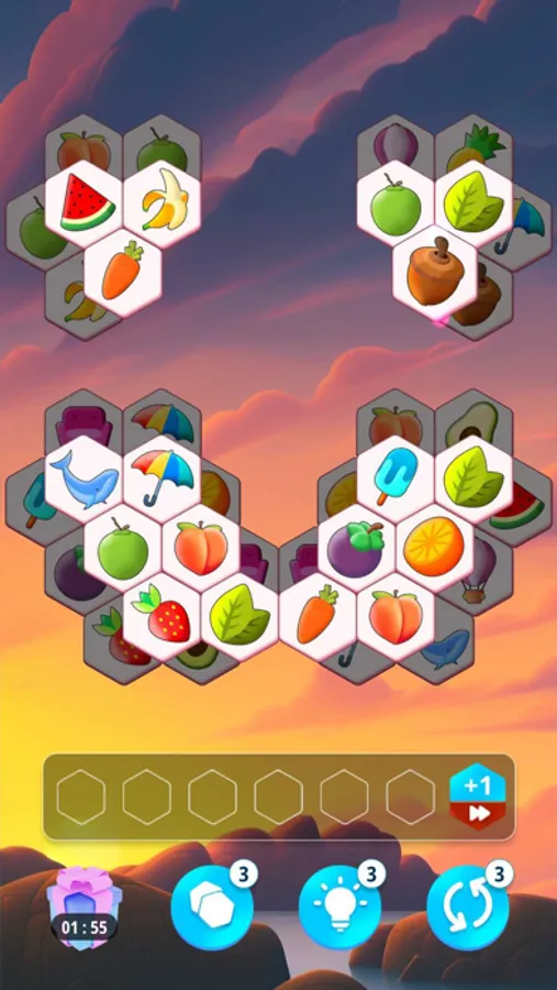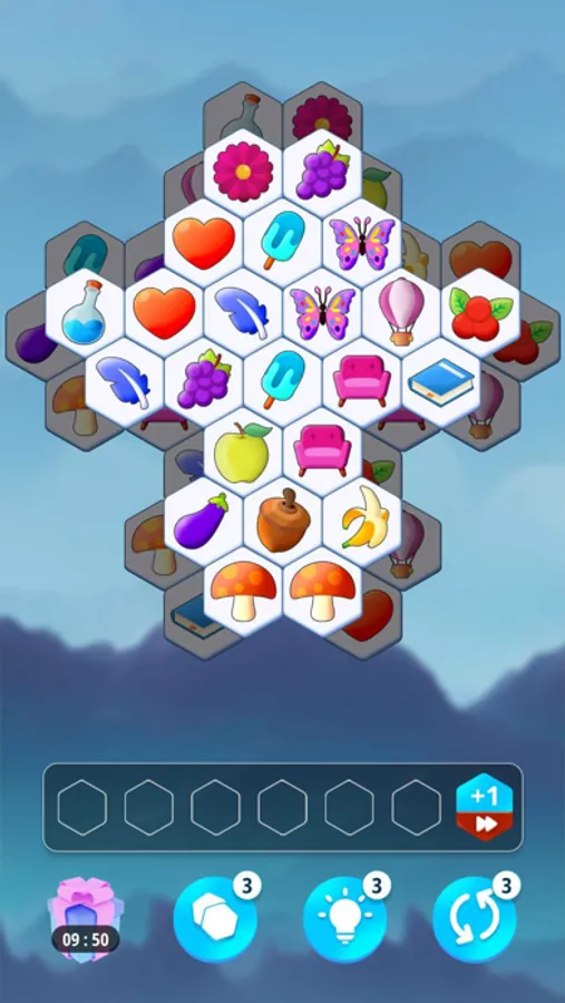 Welcome to Tile Wonder, the ultimate tile match-2 puzzle game that will keep you captivated for hours! Your goal is to eliminate all the tiles in each level, but with a twist – you must make groups of two hexa tiles to clear them.
