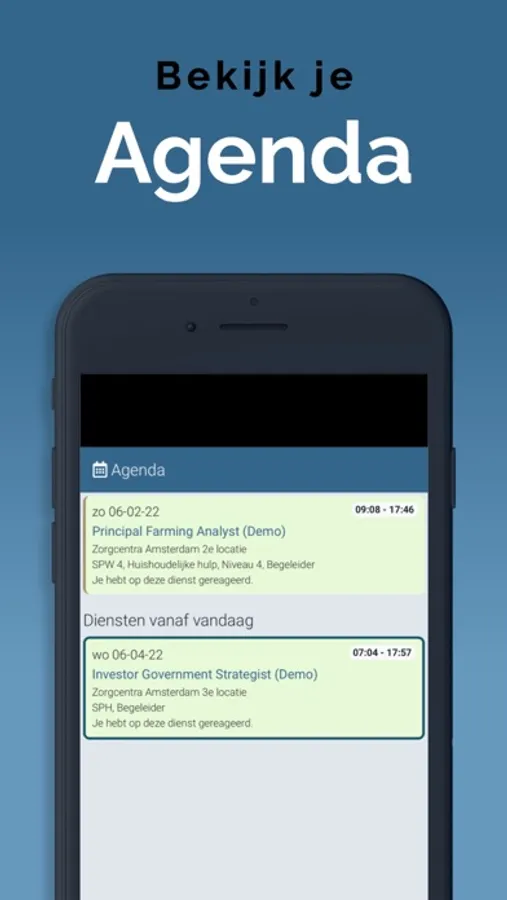 De App is gekoppeld aan het systeem waardoor informatie altijd up-to-date is, via een overzichtelijk dashboard. Bovendien komen belangrijke meldingen, als nieuw beschikbare opdrachten, via een push melding binnen op het apparaat. Zo zie je niets over het hoofd. Ook wijzigingen worden direct zichtbaar, ook in de agenda. Je bent dus altijd op de juiste plaats aanwezig.