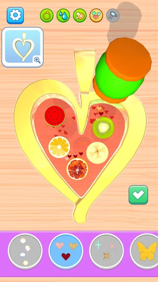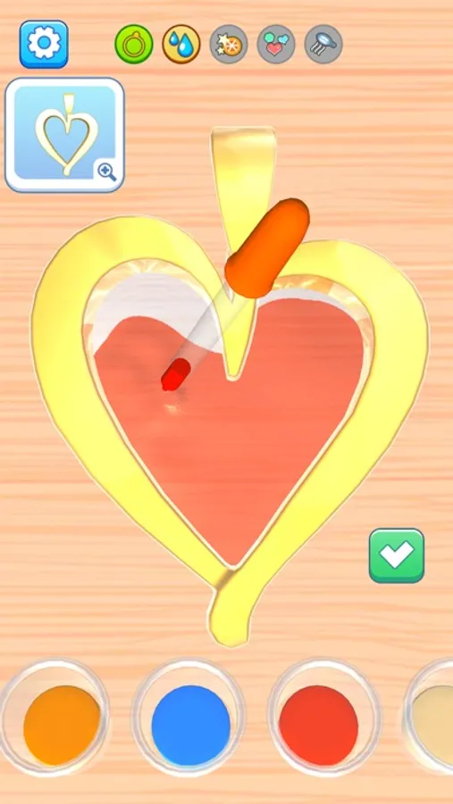 Prepare your clear casting epoxy, mix and match colors as in the pretty designs' template, add the resin fillers: mini fruit clay slices, stones, dried flowers, and add your glitters to create the necklace; all you have to do is drag and drop them into place. You also have the chance to change the color and design of the jewels, and you can share the charms with your friends on social media.