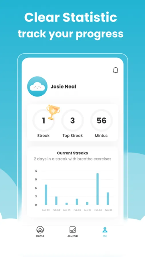 - Breathe uses various statistics to track and test your progress in breathing exercises, they can encourage you to keep practicing everyday and offer you a sense of satisfaction by visual progress record.