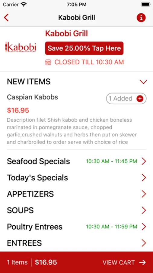 1. Get the Kabobi Grill's Online Ordering app and conveniently order from anywhere on your iPhone.