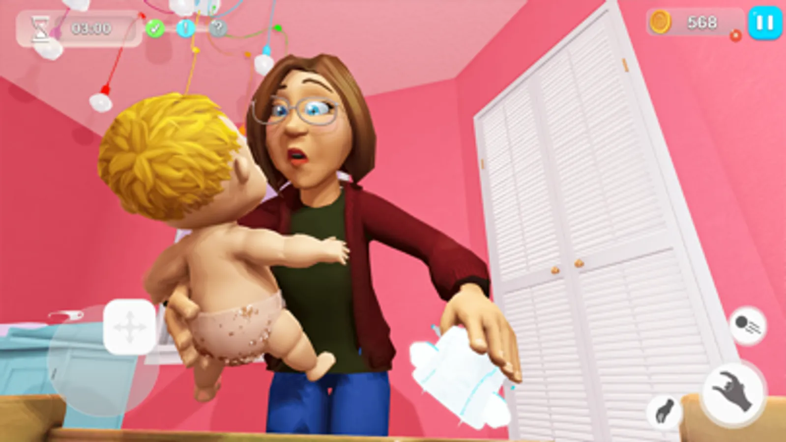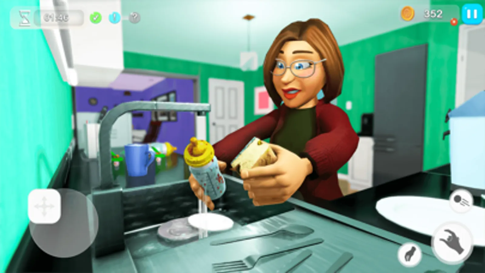 The virtual mother simulator game about a happy family who manages all dream home tasks in this mother life simulator. The real mother simulator ready to perform all home tasks in the family life simulator game. As a boss of the virtual happy family and become a good caretaker in happy family games. The virtual single mom takes a tough task in the mother life simulator and easily accomplishes all tasks in this newborn baby games. The mother to do multiple household tasks like cleaning the home, change a baby's diaper, care taken of the virtual baby, make breakfast, and dinner for the virtual happy family. The real mother wakes up early morning and goes to the washroom for taking a bath and ready the kids in this baby care games 3d. Now start cleaning the home which is shown in a dirty condition in this mother simulator game. After that goes to the kitchen to make breakfast for the happy virtual family in the baby care games. Now the virtual single mom goes to the bedroom to wake up the children in a real mother simulator game..