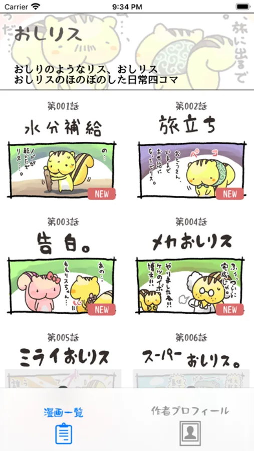 毎日更新される〜おしりのようなリス〜「おしリス」の四コマ漫画+オニモツさんを紹介するアプリです。