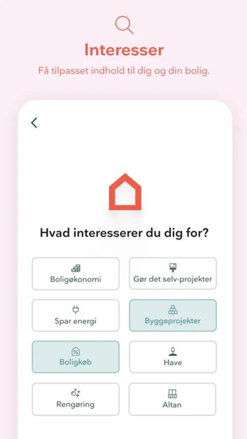 Tilføj din adresse og få indhold, der kun er relevant for netop din bolig. Opdater eller tilføj interesser løbende og tag før- og efterbilleder af dit arbejde, så du kan følge med i dine fremskridt.