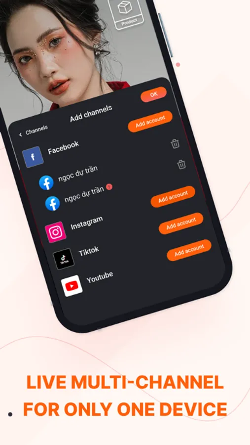 Livestream platform for multi-channel sales Facebook, Youtube, Instagram, Tiktok, Tiki, Lazada