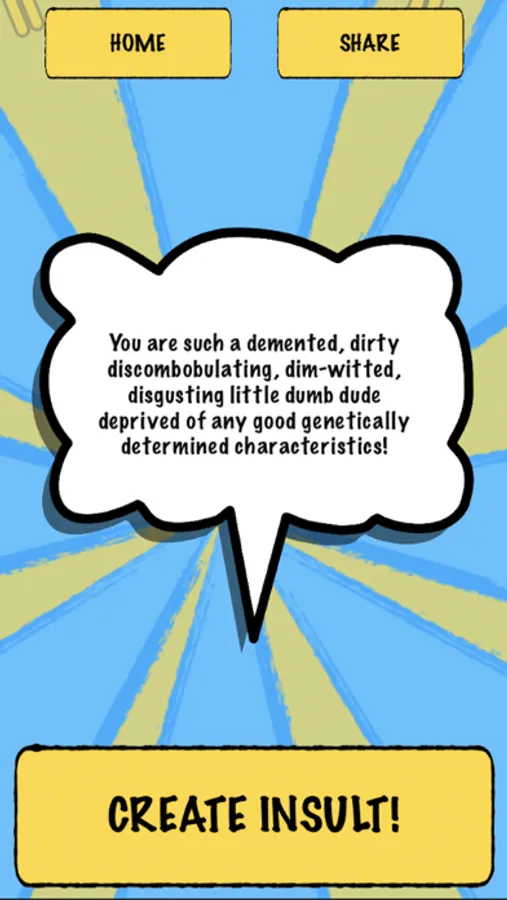 The Insult App 2 (2021) is a sequel to The Insult App (2017). The app is designed to generate fun and interesting random insults that can be copied and shared with friends and foes alike. The UI has been significantly upgraded and there are even more insults than ever before! Enjoy!