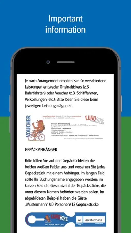 EUROBIKE or EUROHIKE provides the login details for your booked holiday and after download all relevant routes and information are available offline. The app will be your reliable companion before you start your holiday until the last day.