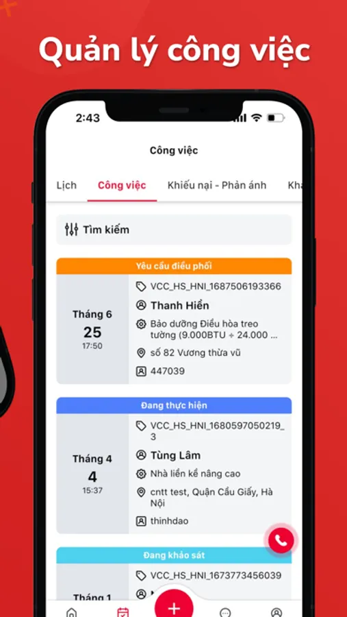 • Nhân viên kỹ thuật đến ngày trong 24h.