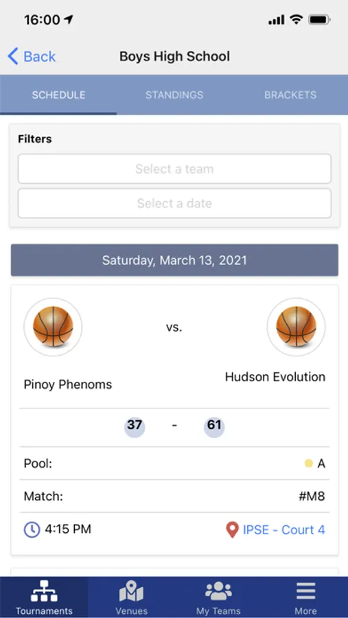 FCP Hoops gives coaches, parents and fans real time tournament information. Users can: