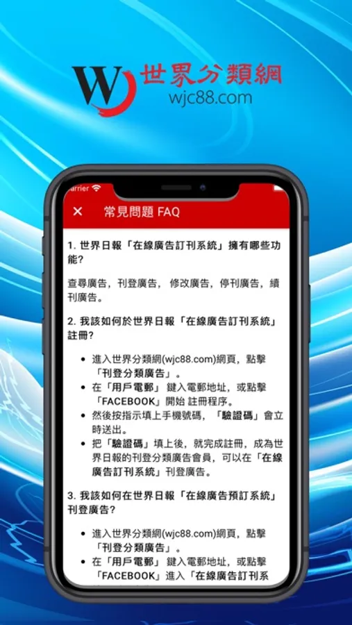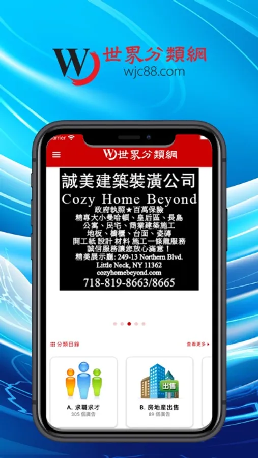 世界分類網(wjc88.com)創建於2002年,經過多次改版,功能全方位,包羅全美50州的分類廣告,讓網友搜尋更便捷。後更應客戶需求,結合報紙和網路資源,讓客戶可以上網訂刊「報紙+網路」和「網路」廣告,擴大宣傳效果、深受歡迎。