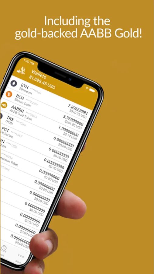 Easily store all your crypto coins in one efficient blockchain wallet. AABB Wallet acts as a Bitcoin wallet, Ethereum wallet, Ethereum Classic wallet, Litecoin wallet, Dash wallet, Tether (USDT) wallet, and a wallet for the gold-backed AABB Gold (AABBG)!