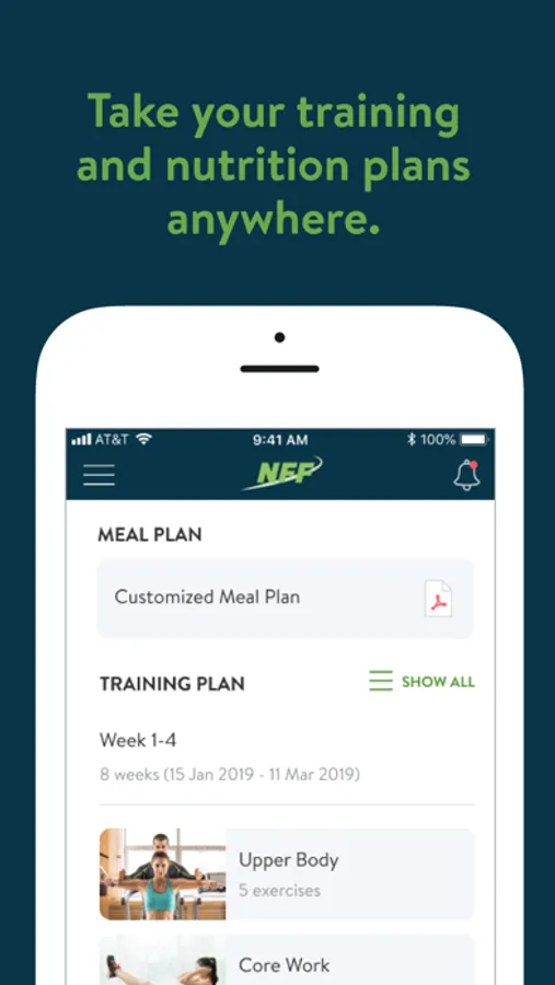 With the Nourish Fit Food App, you can start tracking your workouts and meals, measuring results, and achieving your fitness goals, all with the help of your personal trainer.