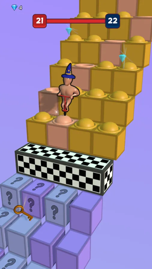 In case you don't make it onto a block of the same color, don’t worry! Our friendly pogo stick man will lose some color, but can continue the run, no rush, just don’t jump on the spikes. With a little luck you will win the prize pool at the end of the level. There might also be some colorful surprises after every fifth level :)