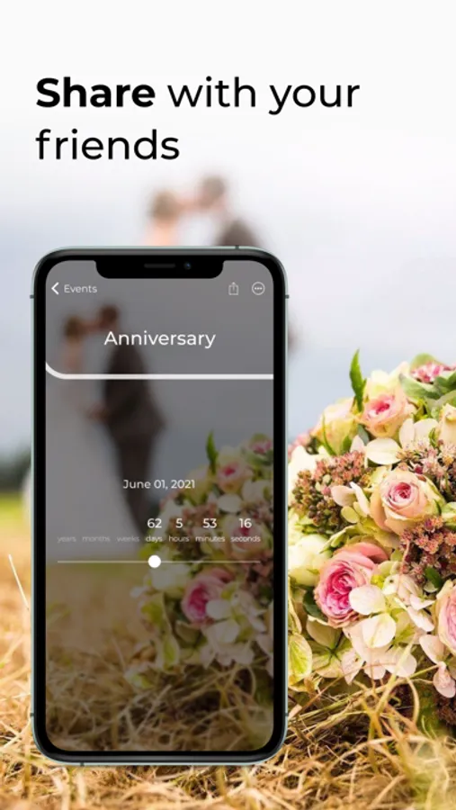 * SHARE a live Countdown or a screenshot of your Countdown with FACEBOOK, INSTAGRAM, TWITTER or EMAIL.