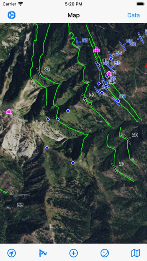 • Enter contacts by tapping and dragging a path, by recording a GPS track, or by projecting a planar orientation across the landscape. Edit contacts by lassoing and deleting vertices or tapping and dragging individual vertices (works way better on an iPad with Apple Pencil than it does with your finger on a relatively tiny iPhone screen).