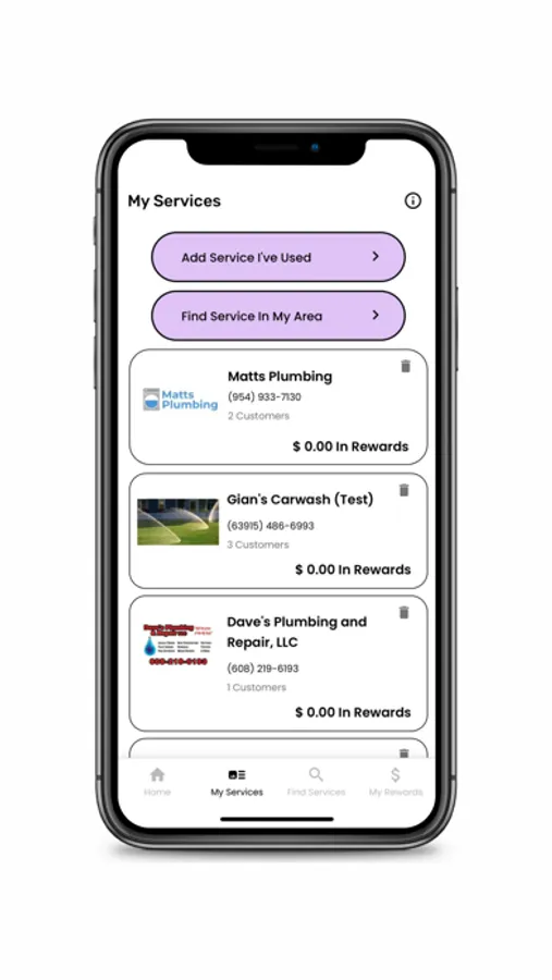 Services I Use allows you to contact and keep track of your processional service providers while earning discounts towards your next project. You can see photos of jobs and new services offered. Keep in touch with your providers and find out when they are running specials.