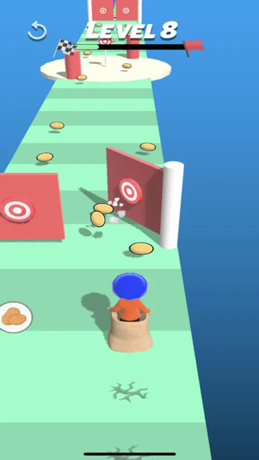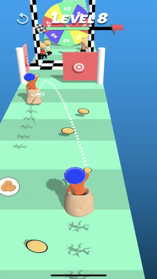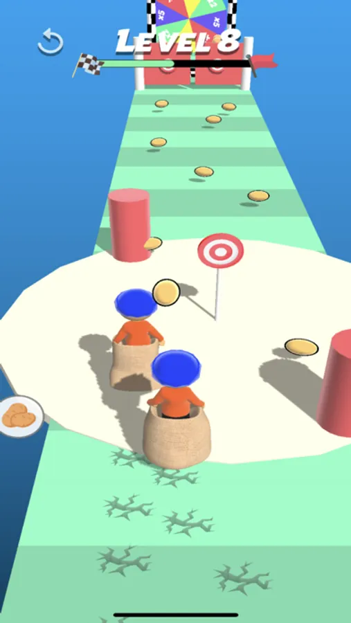 Swipe left or right to move! Whenever you obtain a potato, throw it to the opponent to slow them down or activate obstacles to win!