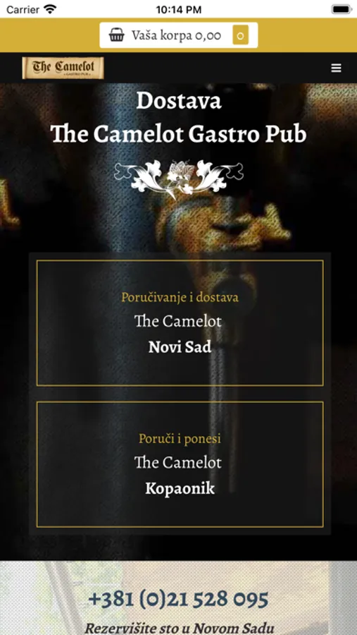 Food delivery application for the restaurant "The Camelot" located in Novi Sad and Kopaonik mountain.