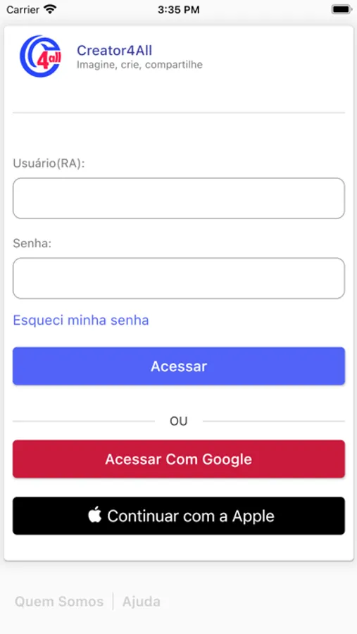 ATENÇÃO: Este aplicativo foi criado exclusivamente para atender a estudantes que não possuem acesso à web permanente e por isso, não conseguem acessar a plataforma www.creator4all.com. Seu uso será mais proveitoso se ocorrer em alinhamento com as atividades educacionais postadas pelos professores.