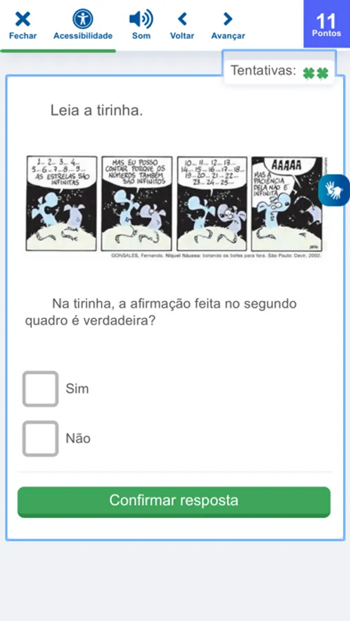 •Motivação para o estudo: o aplicativo possui recursos de games como pontuação, tentativas e feedbacks que aumentam o interesse do aluno no estudo.