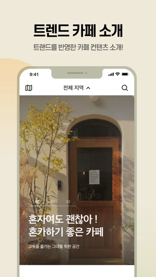 최신 트렌드에 반영된 카페들을 매거진 형식의 콘텐츠로 카페를 추천받을 수 있어요.