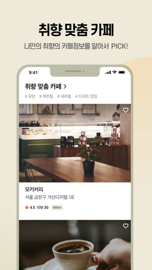 나의 취향과 주변에 가까운 카페를 모카에서 추천 받아보세요