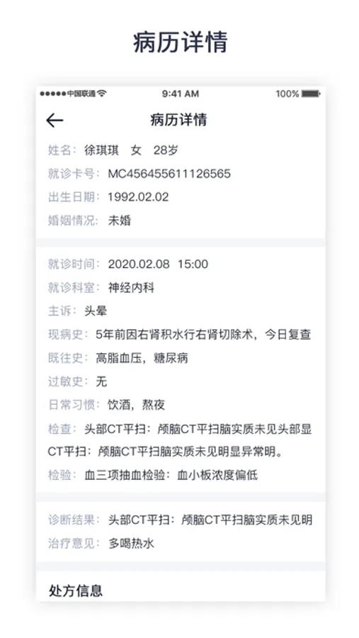 平台提供患者基本信息、历史病历、历史咨询等信息,医生可查看患者详情,更了解患者症状后针对性的做出建议
