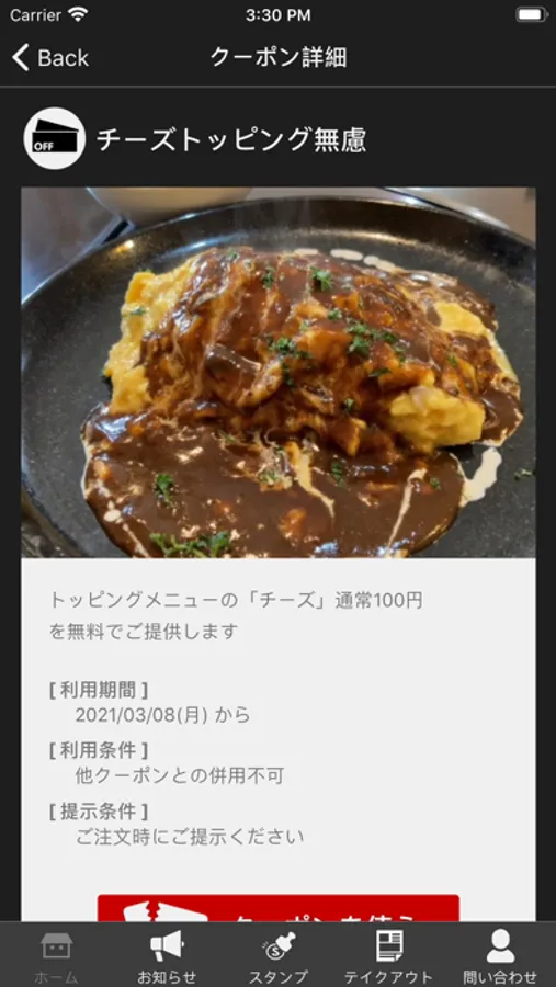 クーポン情報が更新された場合は、プッシュ通知にて更新のお知らせを行うことがあります。