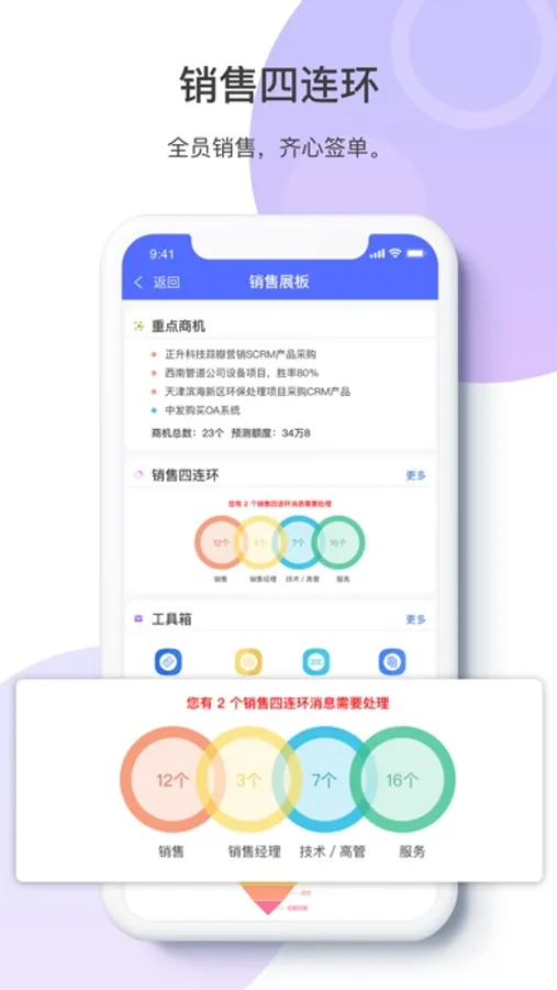 2、销售过程管理:包括客户跟踪,追踪记录,销售协同,拜访记录,销售话术等;