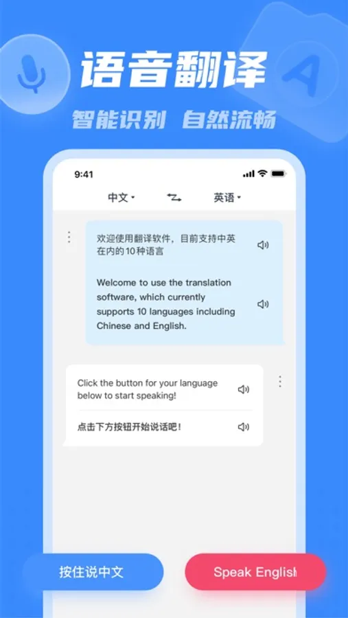 【语音翻译】模拟对话交流,让您快速明白对方的意思,无需输入文本,翻译更效率。