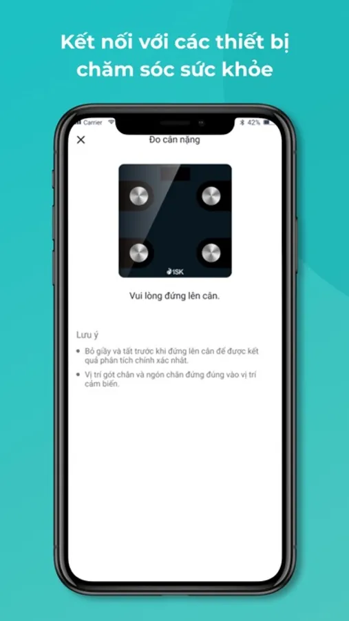 - Kết nối với các thiết bị chăm sóc sức khỏe như cân sức khỏe, vòng đeo, máy đo huyết áp, máy đo SpO2,… qua bluetooth.