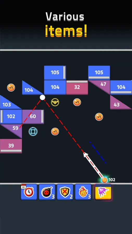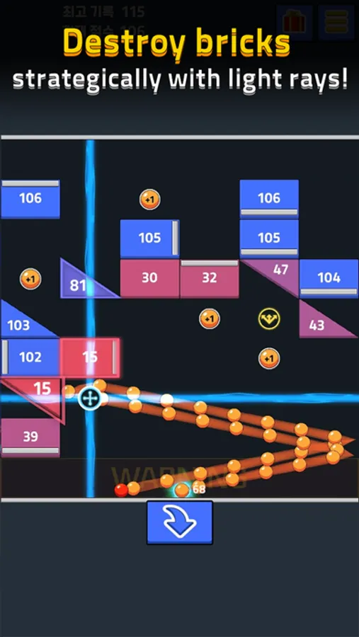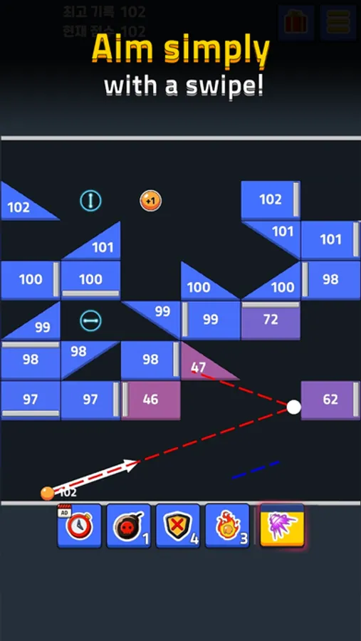 ■ Find best positions and angles to hit all bricks and release your finger!
