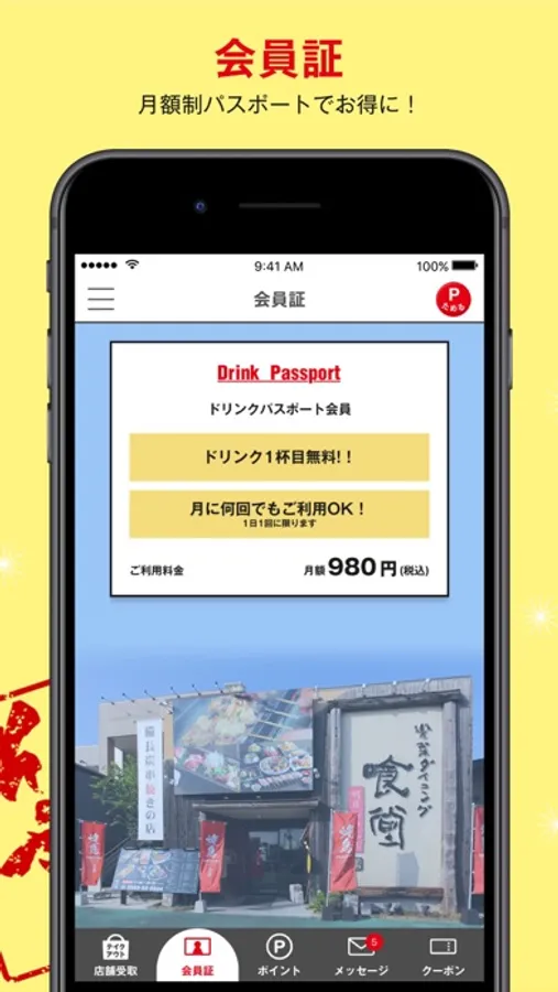 月額980円で、毎回ドリンク1杯目を無料でご利用いただけます!