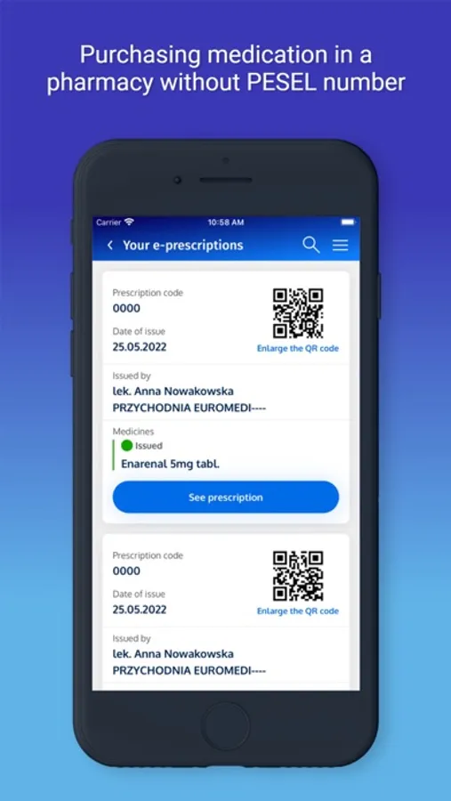 • buying a medication at a pharmacy without having to provide your PESEL number, just let the pharmacist scan the QR code