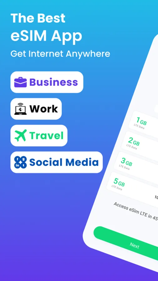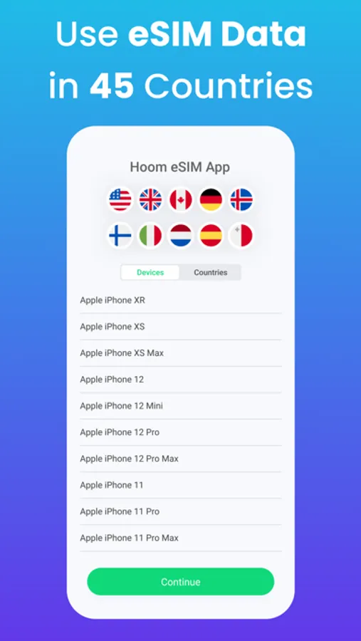 Hoom eSIM app allows eSIM data in 45 countries to enable quick access to the Internet everywhere.
